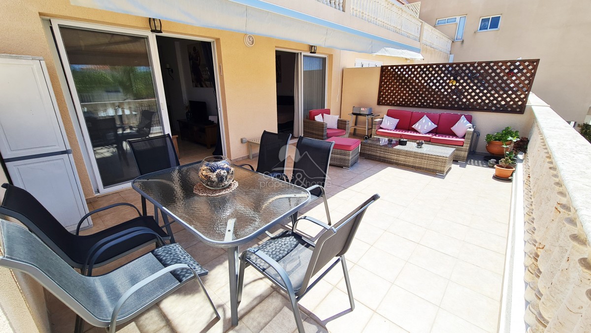Located on the first floor, it can be accessed by either lift or stairs. Entering the apartment you are greeted with a spacious open plan living space consisting of a fully fitted kitchen with breakfast bar, dining and living area which walks out to a large 31m2 balcony. The balcony overlooks the communal swimming pool and benefits from a retractable sun-awning, perfect for enjoying alfresco meals.