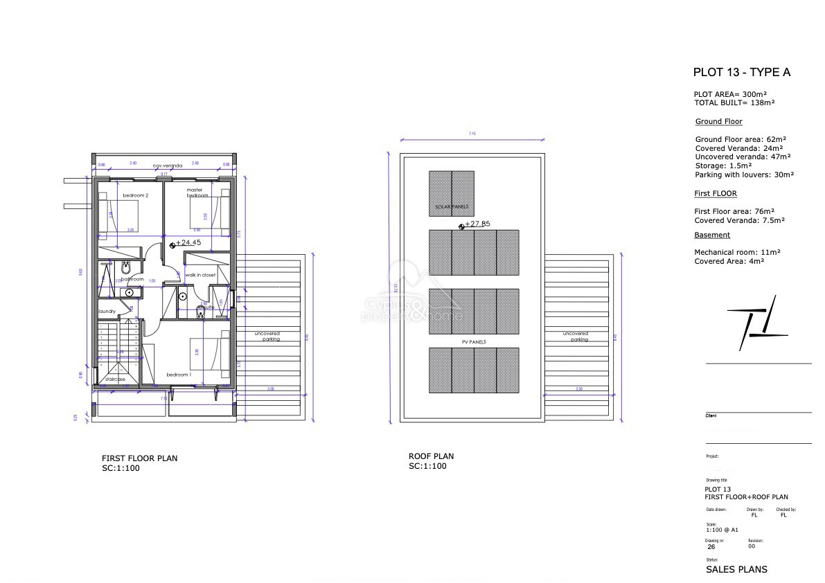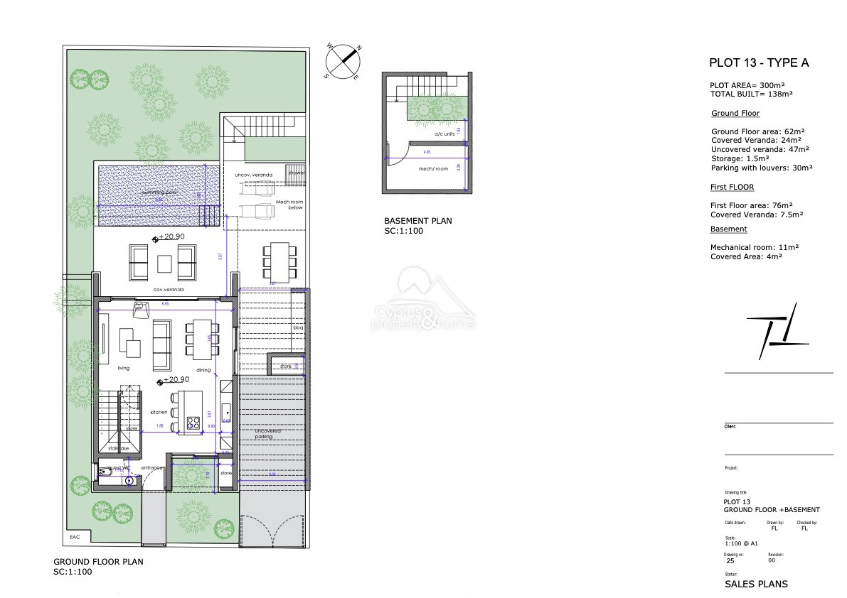 Externally, each villa enjoys a private garden with a 3m x 6m swimming pool, along with covered and uncovered terrace areas perfect for relaxing in the Cyprus climate. A private basement level provides additional functional space, including mechanical and storage areas, while private parking and an electric entrance gate ensure convenience and security.