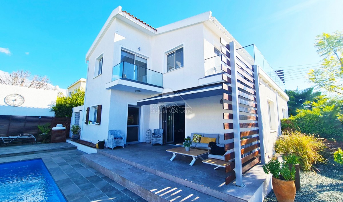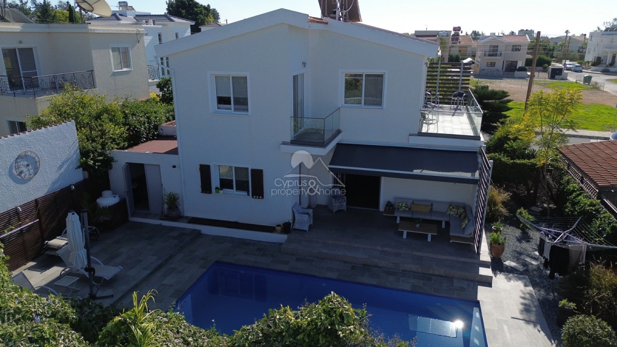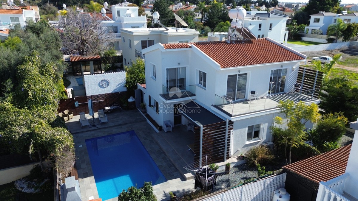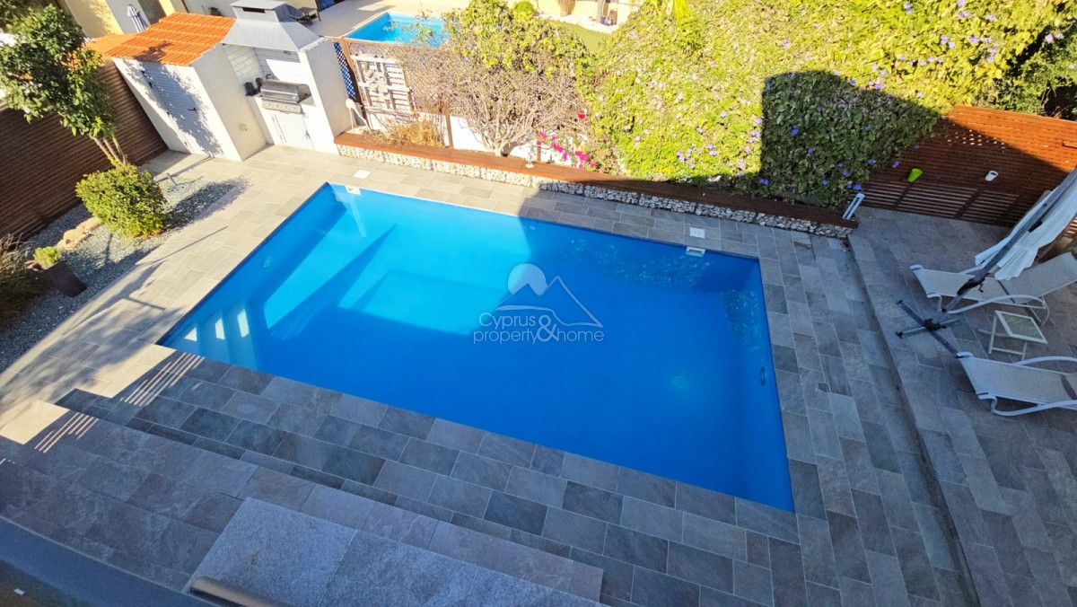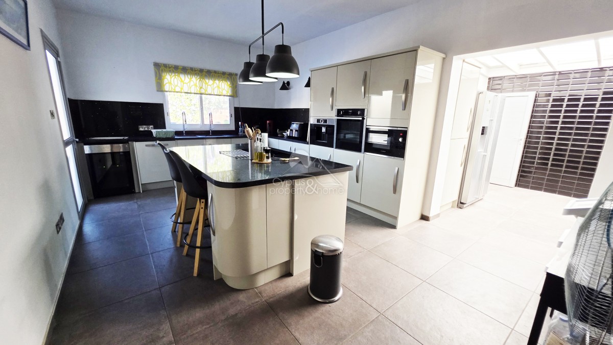 This impressive villa with a private swimming pool is situated on a quiet residential street in the highly sought-after village of Kissonerga. Ideally located within walking distance to local shops and amenities, and just a five-minute drive from a beautiful sandy beach, this property offers both convenience and tranquillity.