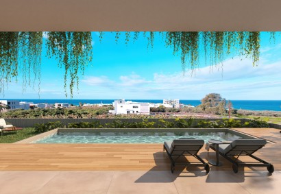 Perched on a gentle hillside in Kissonerga, this elegant villa forms part of an exclusive enclave of just six refined homes, thoughtfully designed to embrace the Mediterranean lifestyle and enjoy beautiful sea views. Blending contemporary design with exceptional outdoor living, the property offers a private swimming pool, generous terraces, and an impressive rooftop garden designed for relaxed entertaining and sunset evenings.