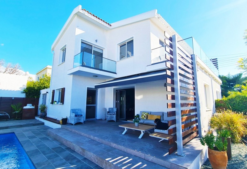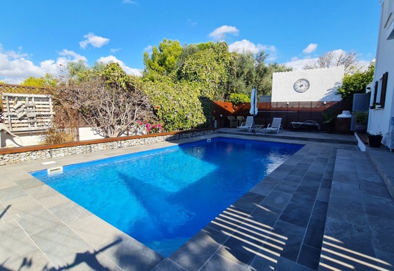 This impressive villa with a private swimming pool is situated on a quiet residential street in the highly sought-after village of Kissonerga. Ideally located within walking distance to local shops and amenities, and just a five-minute drive from a beautiful sandy beach, this property offers both convenience and tranquillity.