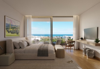 The ground floor is arranged to maximise light, space and the surrounding outlook, featuring a beautifully proportioned open-plan living and dining area that flows effortlessly into a sleek contemporary kitchen with central island, complemented by a separate pantry for added practicality. Large openings connect the interior to a spacious covered veranda, landscaped garden and private swimming pool, creating a seamless indoor-outdoor setting for both everyday living and entertaining. A dedicated BBQ area further enhances the outdoor lifestyle appeal. This level also includes a guest WC and a versatile office or guest room with an en suite shower room, while covered parking for two cars is positioned conveniently at the entrance.