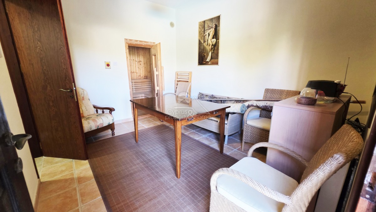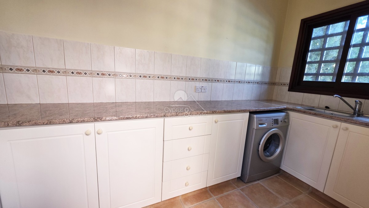 This property is a short drive to the Kamares club which is open to residents and non-residents. It offers drinks, lunch and dinner, as well as hosting various events. It has stunning views, a swimming pool, tennis courts and is a popular social meeting point. In an elevated position, Kamares benefits from a climate with lower humidity. The beaches in Kissonerga are just under a 15 minute drive and Tala with its restaurants, tavernas, bars and amenities such as supermarkets etc. is a 3 minute drive away.